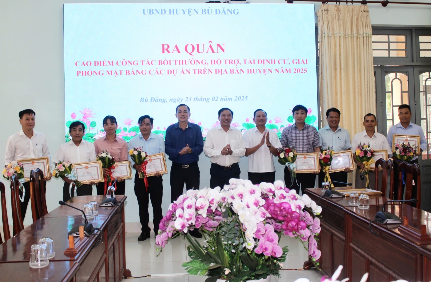 Hôm nay 24-2, UBND huyện Bù Đăng tổ chức phát động ra quân cao điểm thực hiện công tác, bồi thường, hỗ trợ tái định cư, giải phóng mặt bằng các dự án trên địa bàn huyện và khen thưởng cho các tập thể, cá nhân có thành tích trong công tác cứu nạn, cứu hộ đuối nước tại xã Đồng Nai.