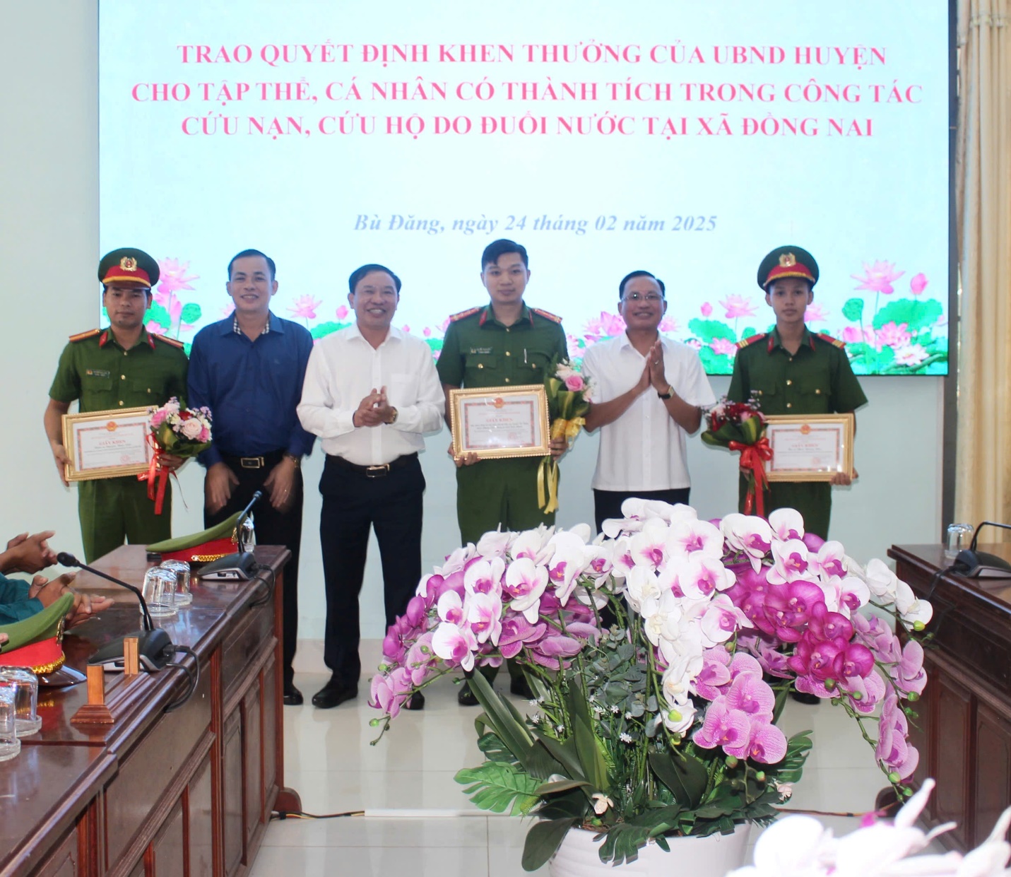 Lãnh đạo huyện trao Giấy khen cho tập thể, cá nhân có thành tích trong công tác cứu nạn, cứu hộ do đuối nước tại xã Đồng Nai.
