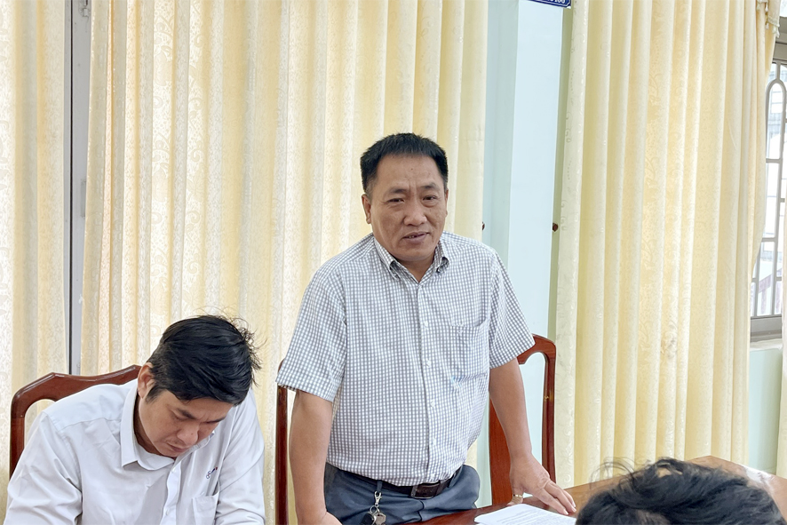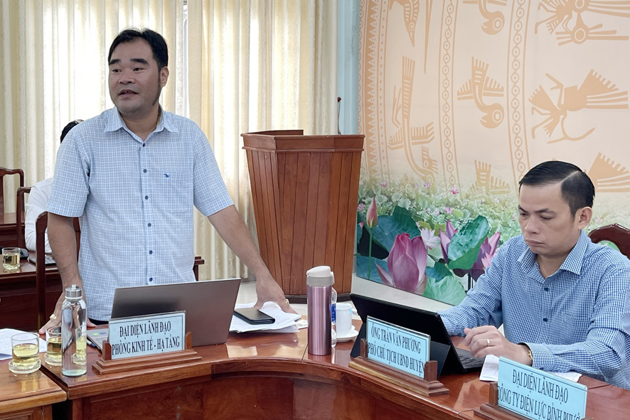 Ông Trần Văn Phương Phó chủ tịch UBND huyện phất biểu thống nhất một số nội dung tại buổi làm việc