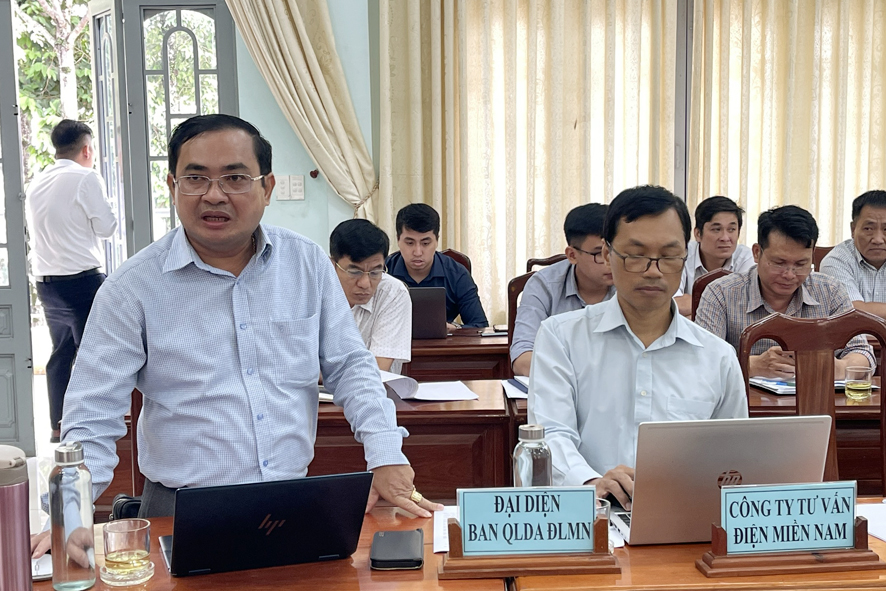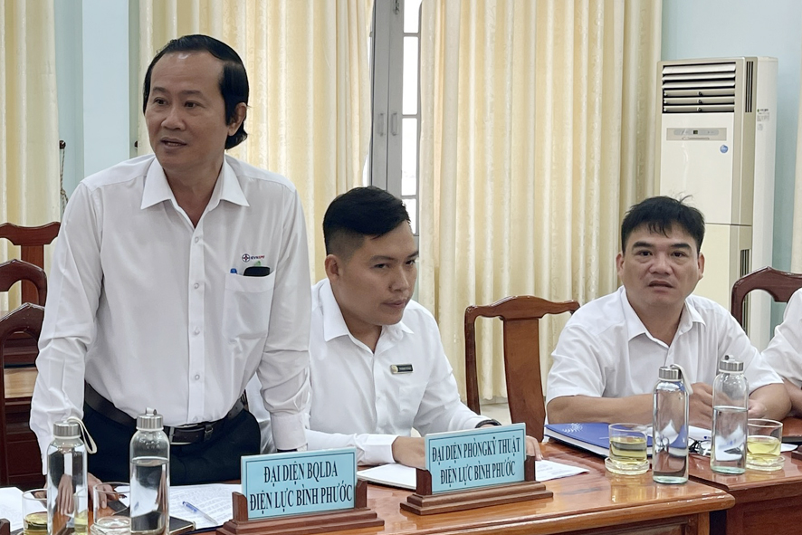 Ông Đăng Xuân Trường Phó giám đốc Công ty Điện lực Bình Phước phát biểu làm rõ một số nội dung thảo luận tại buổi làm việc