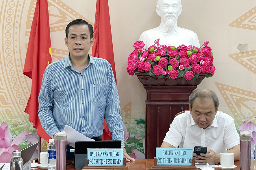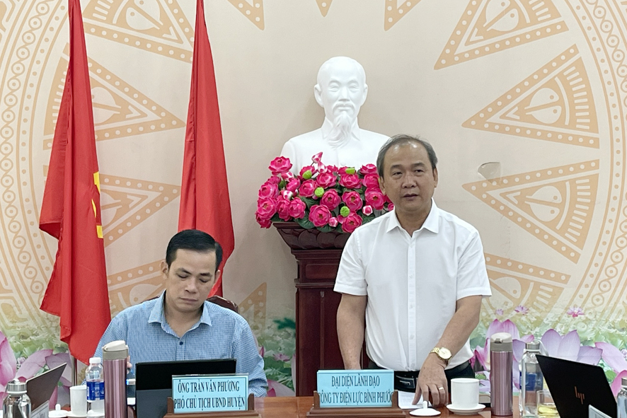 Ông Trần Văn Phương Phó chủ tịch UBND huyện và ông Đăng Xuân Trường Phó giám đốc Công ty Điện lực Bình Phước đồng chủ trì buổi làm việc