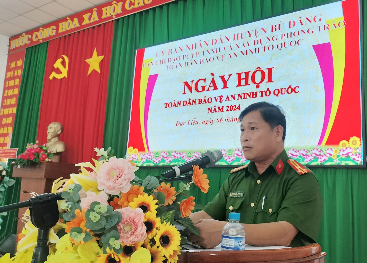 Phát biểu chỉ đạo tại ngày hội, Đại Tá Nguyễn Phương Đằng, Ủy viên ban thường vụ Tỉnh ủy, Phó Giám đốc Công an tỉnh Bình Phước đề nghị thời gian tới, lực lượng Công an huyện tiếp tục chủ động tham mưu cho cấp ủy, chính quyền địa phương chỉ đạo phối hợp các ban ngành, đoàn thể làm tốt công tác tuyên truyền giáo dục pháp luật cho người dân. Cần quan tâm hơn nữa công tác công tác xây dựng phong trào toàn dân bảo vệ ANTQ, nghiên cứu xây dựng, nhân rộng các mô hình phòng, chống tội phạm mang lại hiệu quả tại địa phương.