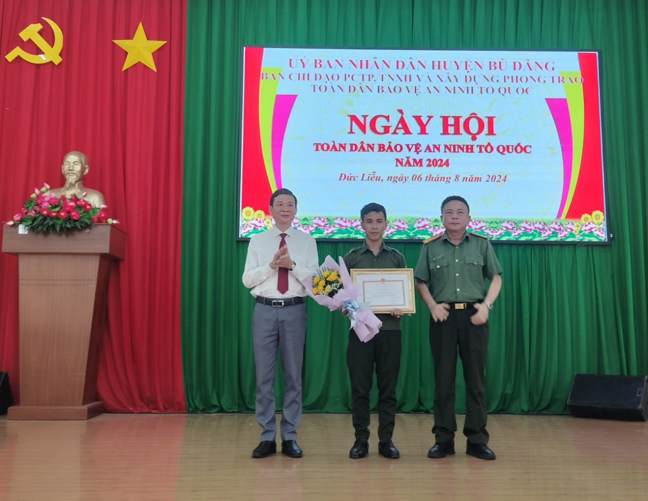 Dịp này, Ban tổ chức cũng đã tổ chức Thi đấu bóng chuyền và các trò chơi dân gian sôi nổi với sự tham gia của đông đảo các tầng lớp nhân dân. Đồng thời trao Giấy khen của Công an tỉnh Bình Phước và UBND huyện cho các tập thể, cá nhân có thành tích xuất sắc trong phong trào Bảo vệ ANTQ và trao tặng 20 phần quà cho các hộ gia đình chính sách có hoàn cảnh khó khăn trên địa bàn huyện.