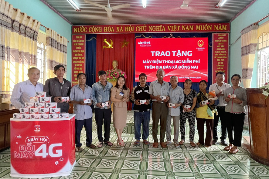 Chi nhánh Viettel Bù Đăng phối hợp với UBND xã Đồng Nai trao tặng 119 máy điện thoại 4G cho người dân