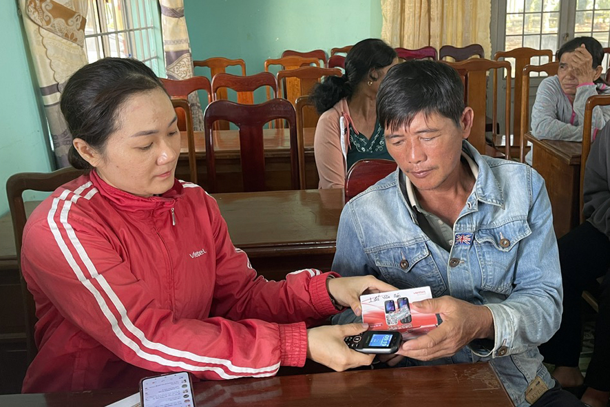 Nhân viên Chi nhánh Viettel Bù Đăng hướng dẫn người dân cài đặt sử dụng sim 4G