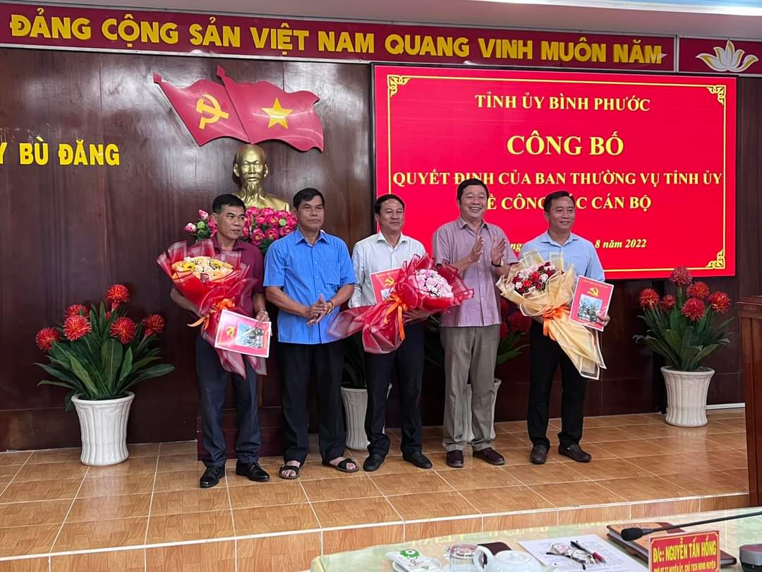 Tại buổi lễ, Trưởng ban tổ chức Huyện ủy Bùi Ngọc Hân đã công bố các quyết định của Ban thường vụ Tỉnh ủy Bình Phước chuẩn y cán bộ Ủy ban kiểm tra Huyện ủy Bù Đăng đối với các đồng chí: Nguyễn Hoàng Giang - Uỷ viên Ban Thường vụ. Trưởng Ban Tuyên giáo - Giám đốc Trung Tâm Chính trị huyện giữ chức Ủy viên, Chủ nhiệm Uỷ Ban Kiểm tra Huyện ủy; Nguyễn Cảnh Thảo - Huyện ủy viên, Chánh Thanh tra Huyện, giữ chức Uỷ viên Uỷ Ban Kiểm tra Huyện ủy; đồng chí Lê Văn Lành, cán bộ Uỷ Ban kiểm tra giữ chức ủy viên Uỷ Ban Kiểm tra Huyện ủy khóa VIII, nhiệm kỳ 2020 - 2025.
