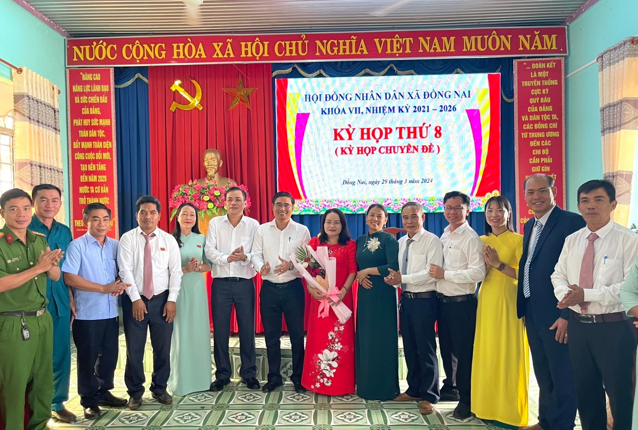Phát biểu nhận nhiệm vụ bà Đinh Thị Thanh – Phó Bí thư Đảng uỷ, tân Chủ tịch UBND xã Đồng Nai, cảm ơn sự tín nhiệm của các đại biểu HĐND xã hứa sẽ cống hiến, phát huy năng lực, sở trường của mình cùng với đảng bộ, chính quyền và nhân dân xây dựng xã nhà ngày càng phát triển, đặc biệt là việc thực hiện chương trình mục tiêu Quốc gia xây dựng nông thôn mới, cố gắng đưa xã Đồng Nai về đích nông thôn mới theo kế hoạch đã đề ra.