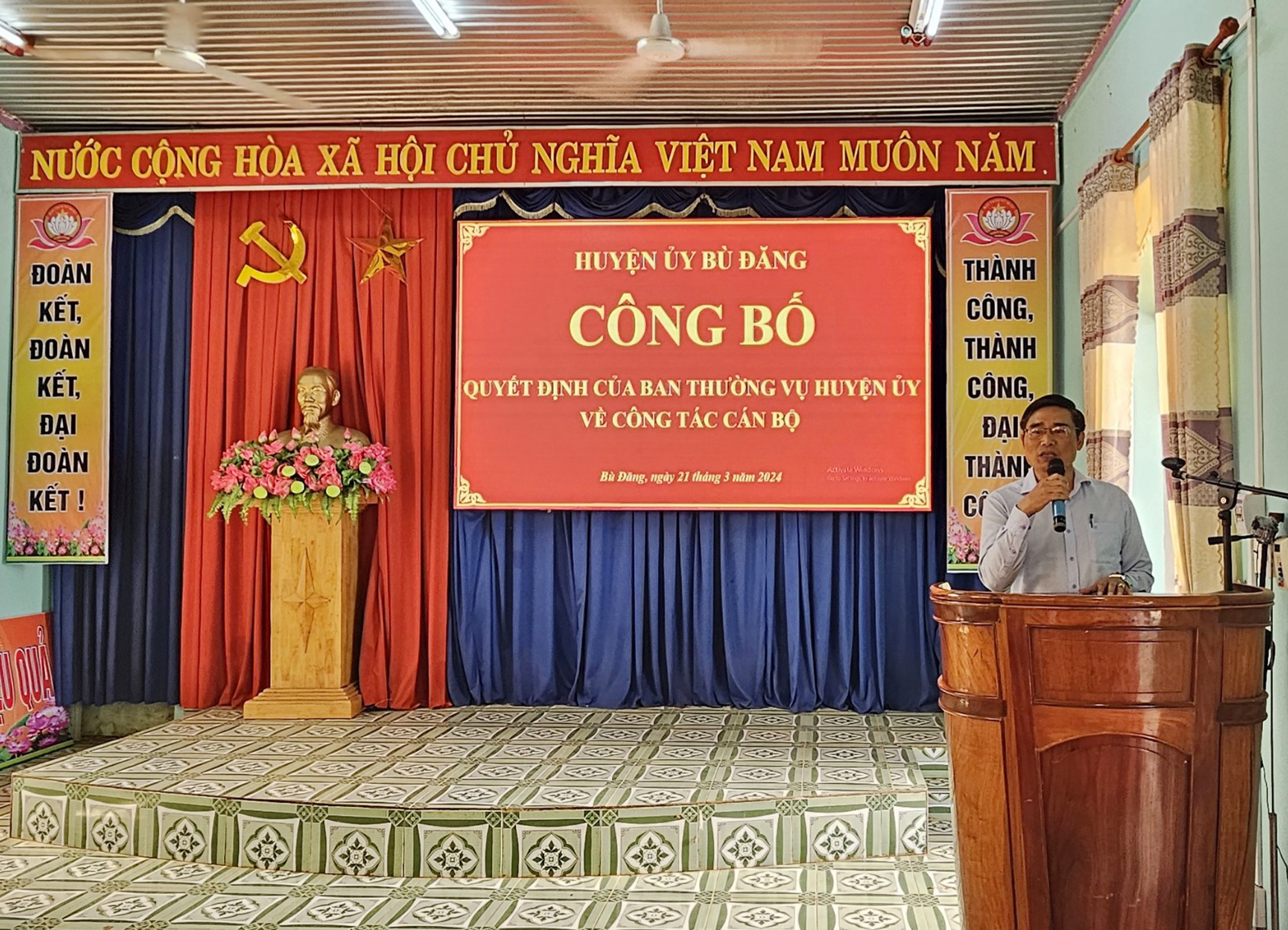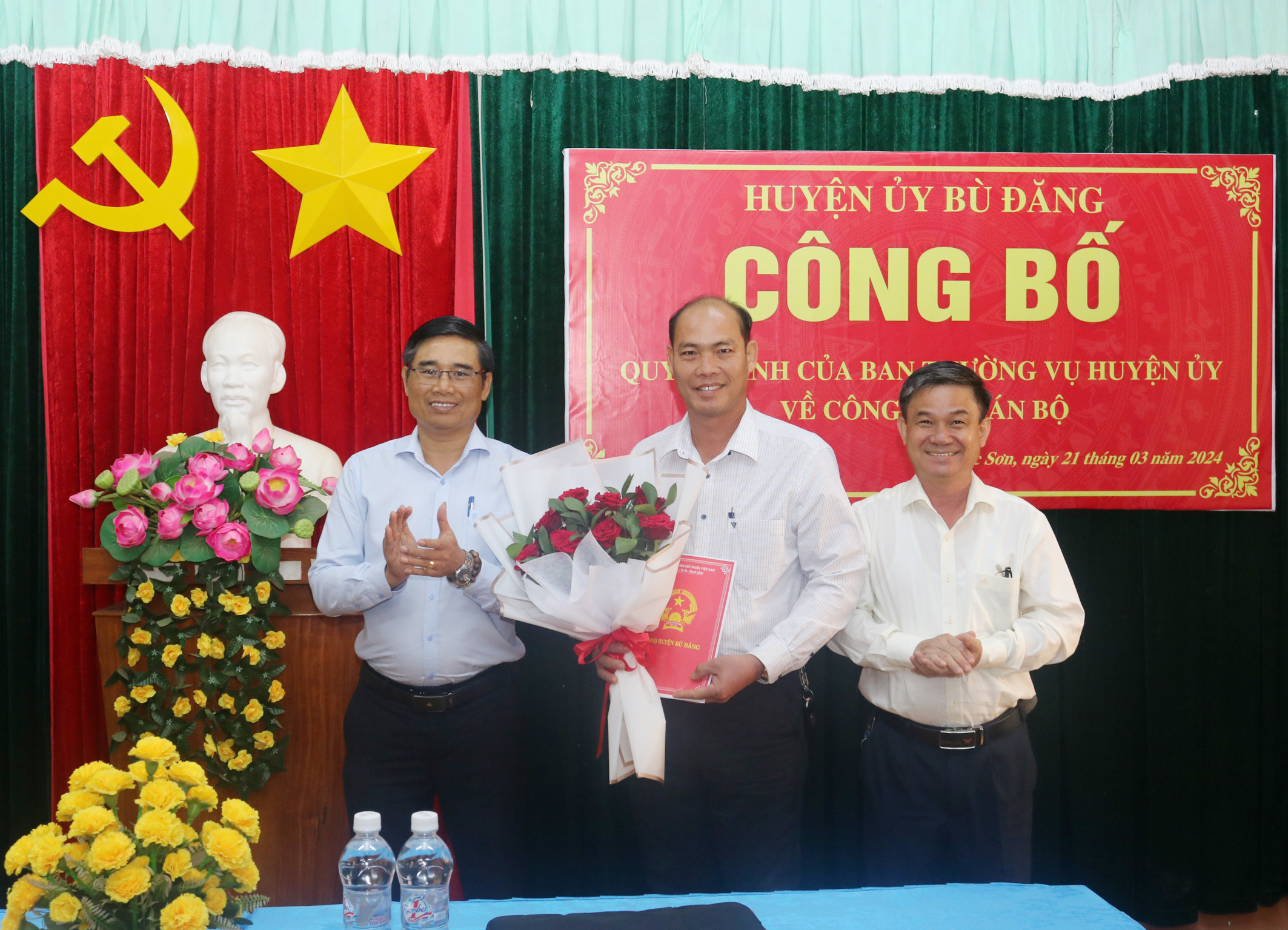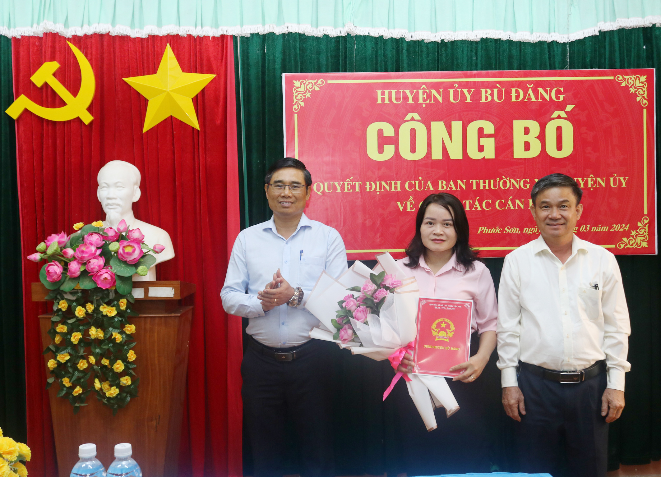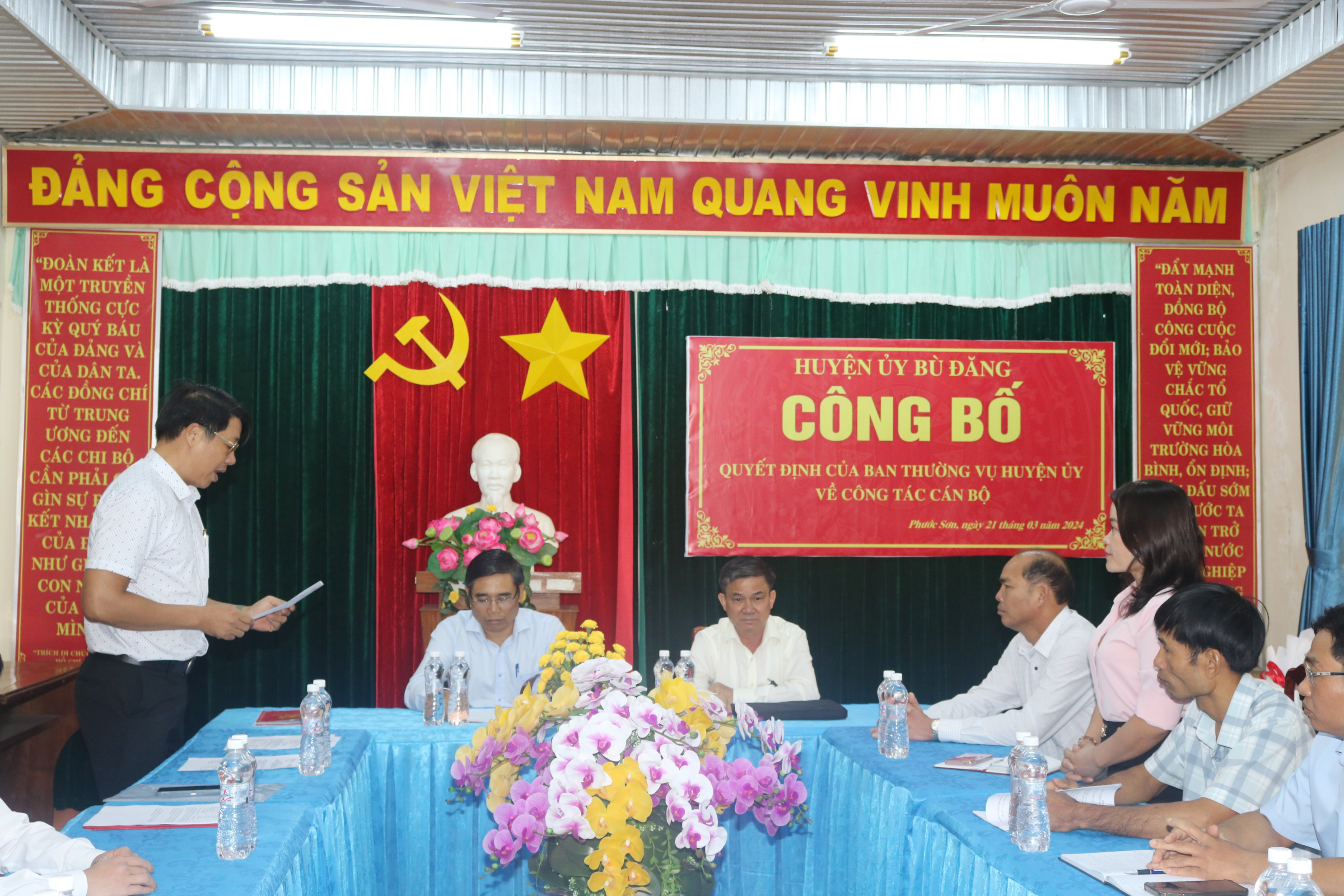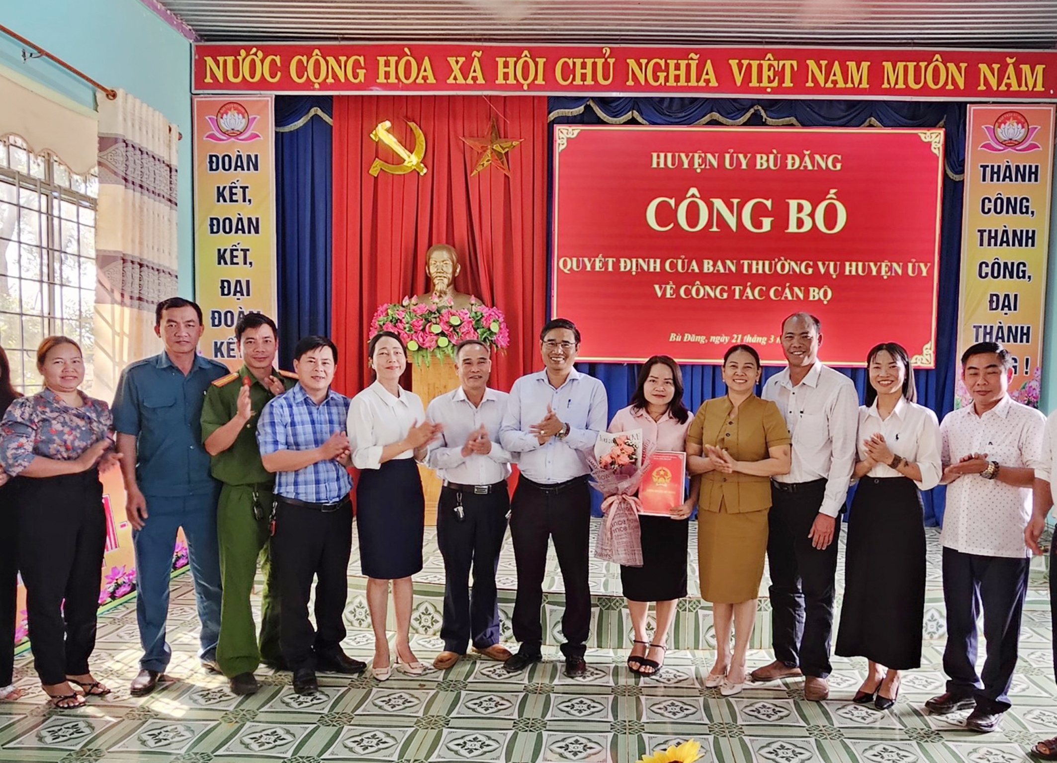 Sáng 21 - 03, tại hai xã Phước Sơn và Đồng Nai. Huyện ủy Bù Đăng tổ chức công bố quyết định của Ban Thường vụ Huyện ủy về công tác cán bộ. Dự buổi công bố có đồng chí Bùi Ngọc Hân, Ủy viên Ban Thường vụ, Trưởng Ban tổ chức Huyện ủy; đồng chí Điểu Hà Hồng Lý Ủy viên Ban Thường vụ, Phó chủ tịch Hội đồng nhân dân huyện; đồng chí Vũ Thế Vinh, huyện Ủy viên, Chánh văn phòng Huyện ủy cùng các đồng chí Ban thường vụ, Ban chấp hàng Đảng bộ hai xã Phước sơn và Đồng Nai.