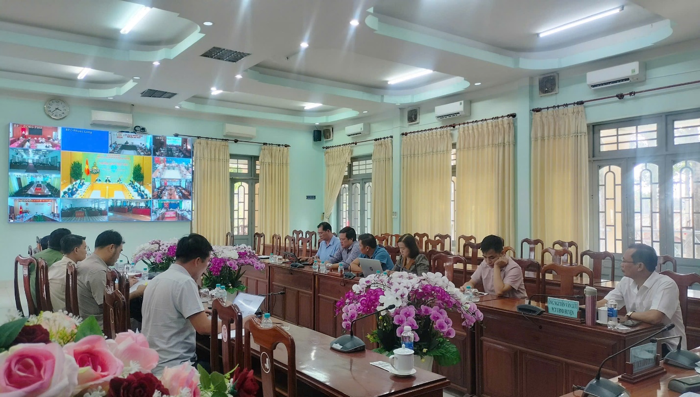 Phó Bí thư Huyện ủy, Chủ tịch UBND huyện Vũ Văn Mười chủ trì tham dự phiên họp tại điểm cầu UBND huyện.