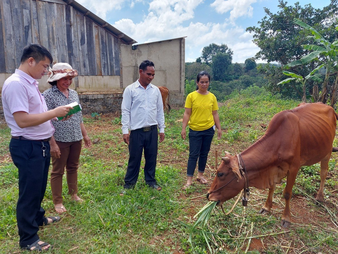 Chị Thị Hông cho biết: “ Lúc trước, gia đình mình nghèo lắm lại đồng con nữa, rất là khó khăn nên không có tiền để chăm sóc điều hoặc chăn nuôi bò. Năm 2019, Gia đình mình được các tổ viên trong tổ TK&VV do Chị Hương làm tổ trưởng bình xét cho vay số tiền 50 triệu đồng từ nguồn vốn tín dụng chính sách. Có tiền, gia đình mình đã mua được 2 con bò và chăm sóc hơn 1ha điều. Hiện nay, bò nhà mình đã đẻ thêm được 1 con bò con và việc chăm sóc điều giúp gia đình có thu nhập khoảng 50 triệu đồng mỗi năm, thoát được hộ nghèo”.