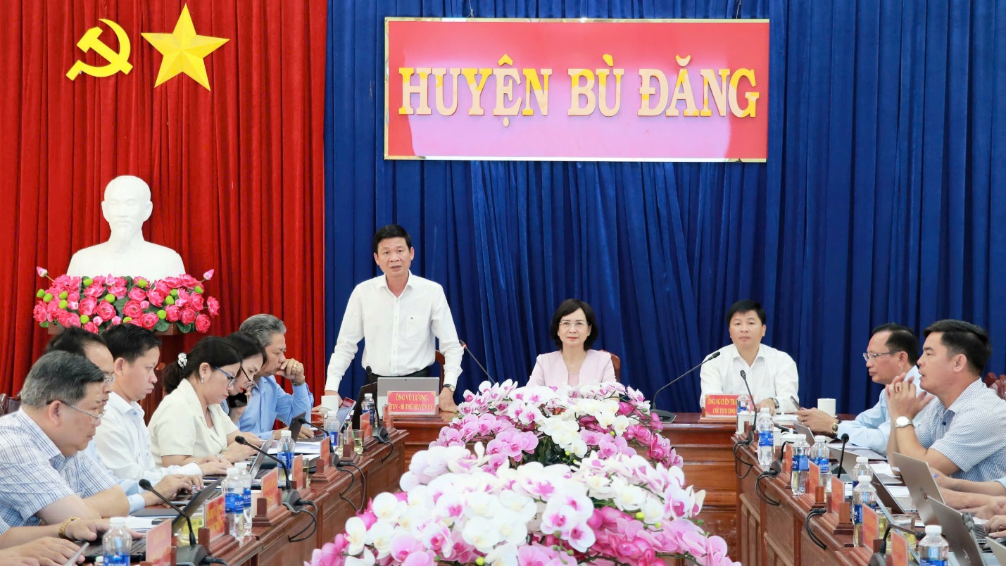 Tỉnh ủy viên, Bí thư Huyện ủy Bù Đăng Vũ Lương phát biểu tại buổi làm việc.