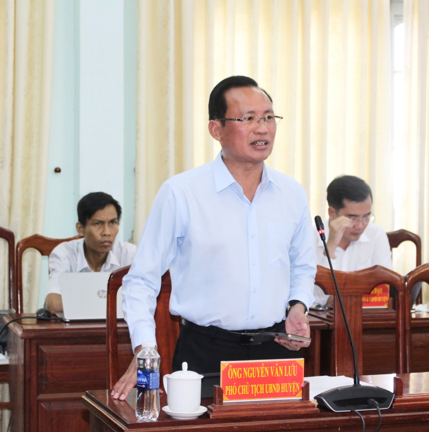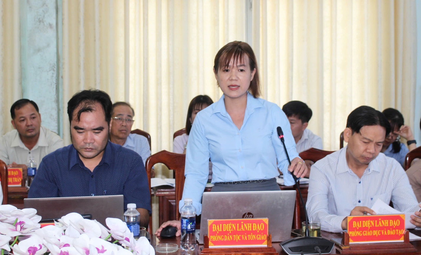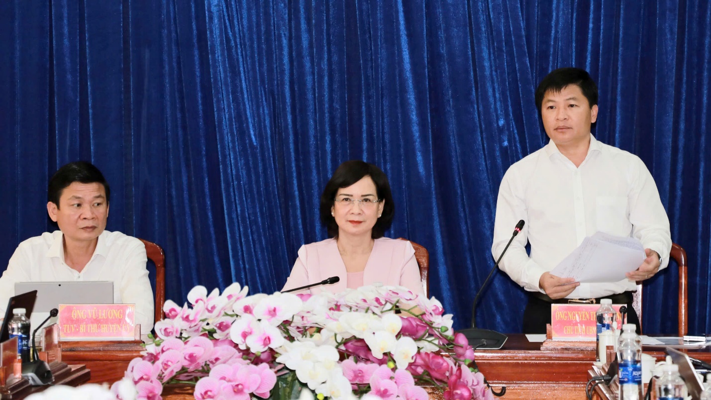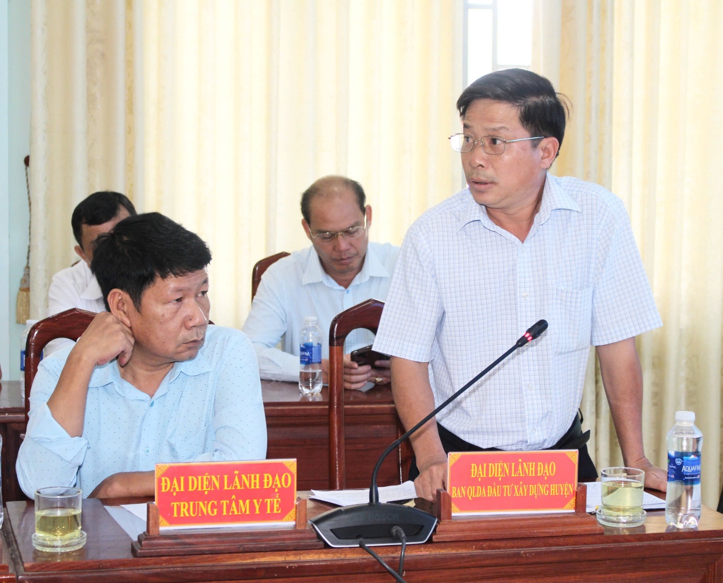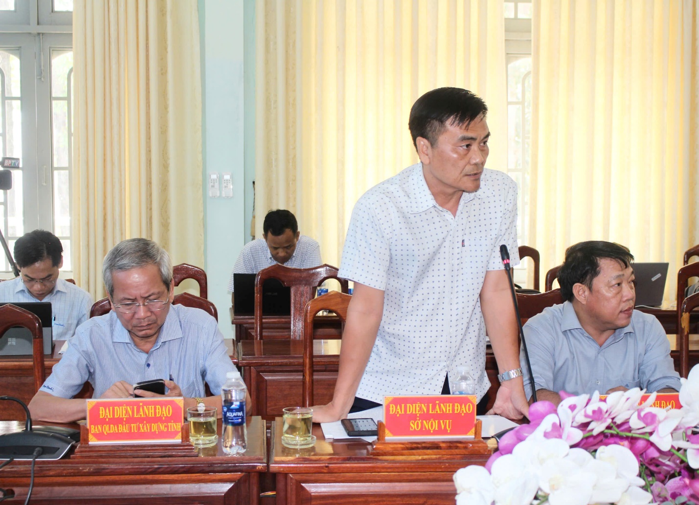 Đại diện lãnh đạo huyện, các sở, ngành và phòng, ban chuyên môn báo cáo tiến độ và làm rõ một số nội dung liên quan đến công tác giải ngân vốn đầu tư công, 3 chương trình mục tiêu quốc gia và chương trình xóa nhà tạm, nhà dột nát