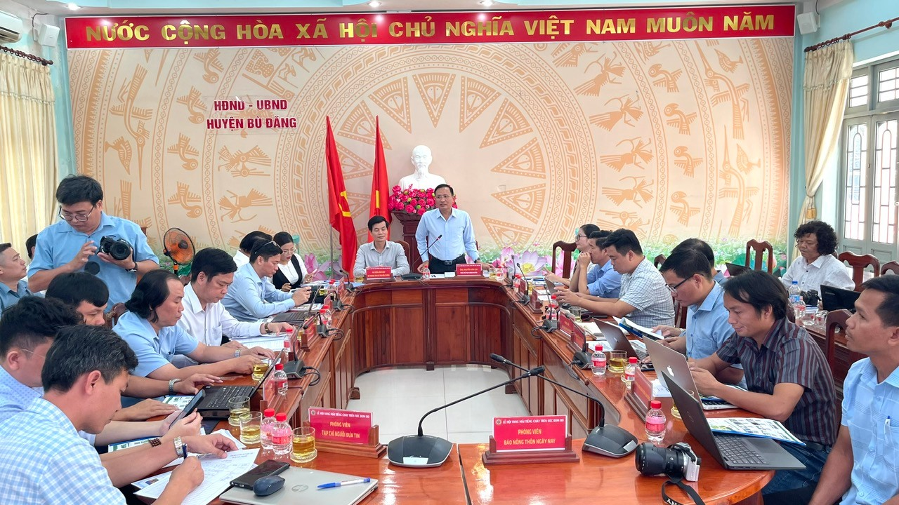 Chiều 24 -10, tại trụ sở UBND huyện, Huyện ủy, UBND huyện Bù Đăng tổ chức họp báo công bố các hoạt động chào mừng kỷ niệm 50 năm ngày giải phóng huyện Bù Đăng (14/12/1974 - 14/12/2024) và Lễ hội “Vang mãi tiếng chày trên sóc Bom Bo”. ông Nguyễn Văn Lưu – UVBTV, PCT.UBND huyện, Trưởng Ban tổ chức các Ngày lễ lớn chủ trì buổi họp báo. Tham dự buổi họp báo có đại diện lãnh đạo Sở Thông tin và Truyền thông; Sở Văn hoá – Thể thao và Du lịch, các cơ quan báo, đài trong và ngoài tỉnh.