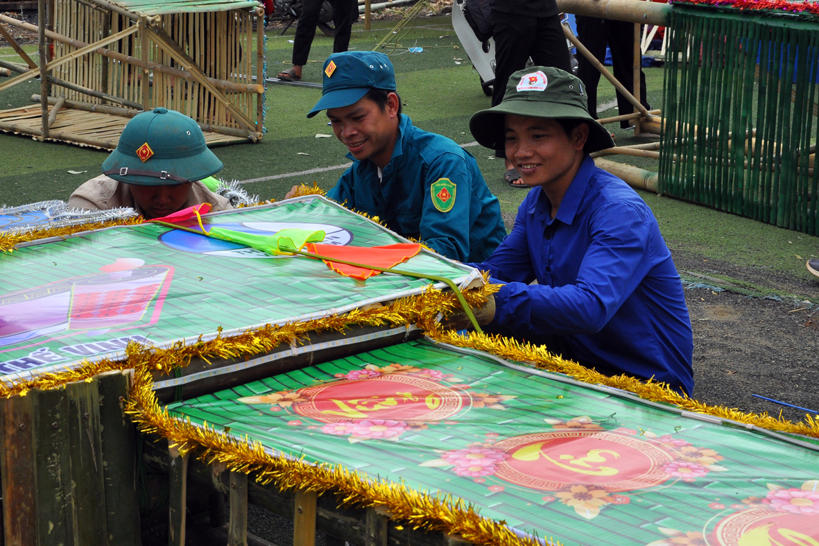 Các trại sinh đang kiểm tra, chỉnh sửa, tô vẽ lại các công đoạn cuối cùng để tiến hành dựng trại