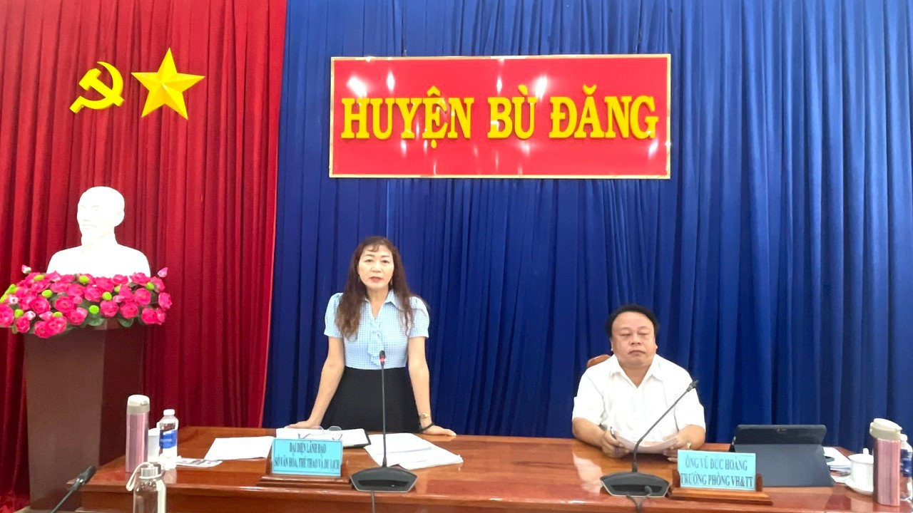 Kết thúc buổi kiểm tra, Đoàn công tác đánh giá cao những kết quả đạt được trong công tác gia đình của huyện Bù Đăng thời gian qua. Đồng thời cũng đề nghị huyện tăng cường sự lãnh đạo, chỉ đạo của các cấp ủy Đảng và chính quyền đối với công tác gia đình và phòng, chống bạo lực gia đình trong thời gian tới; Tiếp tục tổ chức tuyên truyền, phổ biến rộng rãi Chiến lược phát triển gia đình Việt Nam đến năm 2030; Thường xuyên tổ chức các lớp tập huấn nâng cao năng lực cho đội ngũ cán bộ, công chức làm công tác phòng, chống bạo lực gia đình từ huyện đến các xã và khu dân cư; cần duy trì và củng cố mô hình phòng, chống bạo lực gia đình.