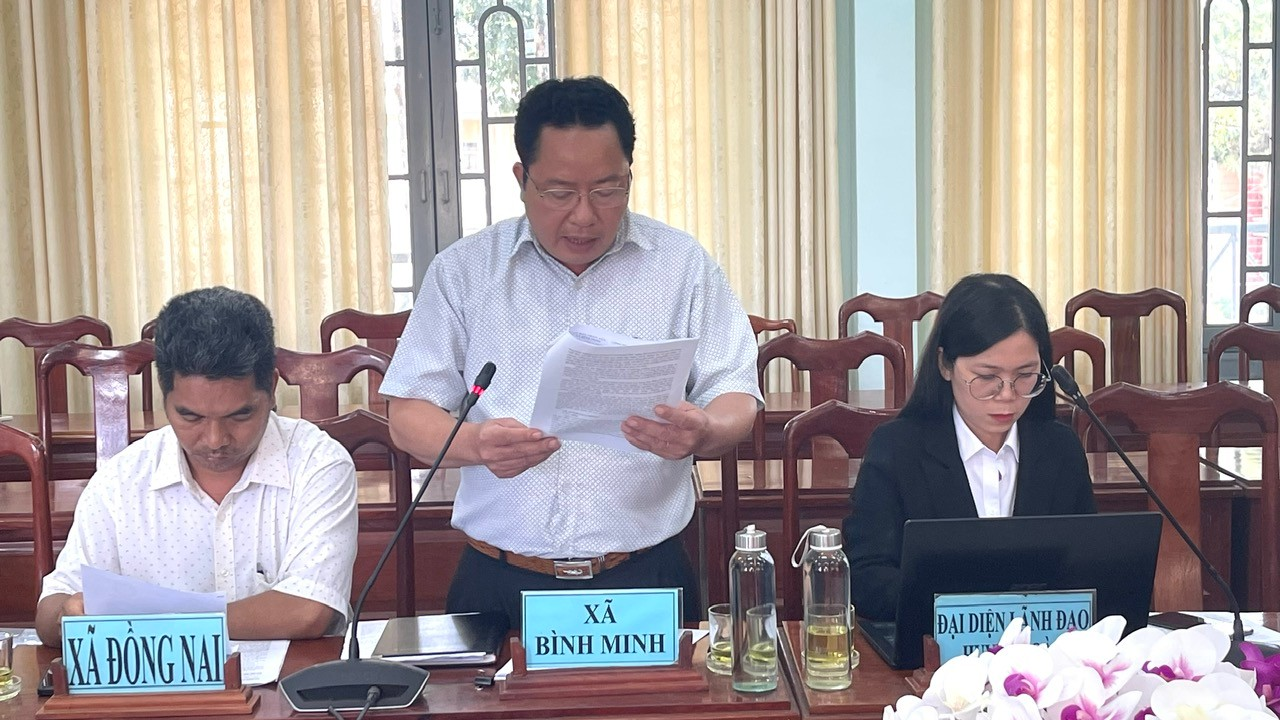 Lãnh đạo xã Bình Minh báo cáo công tác gia đình của xã với đoàn kiểm tra.