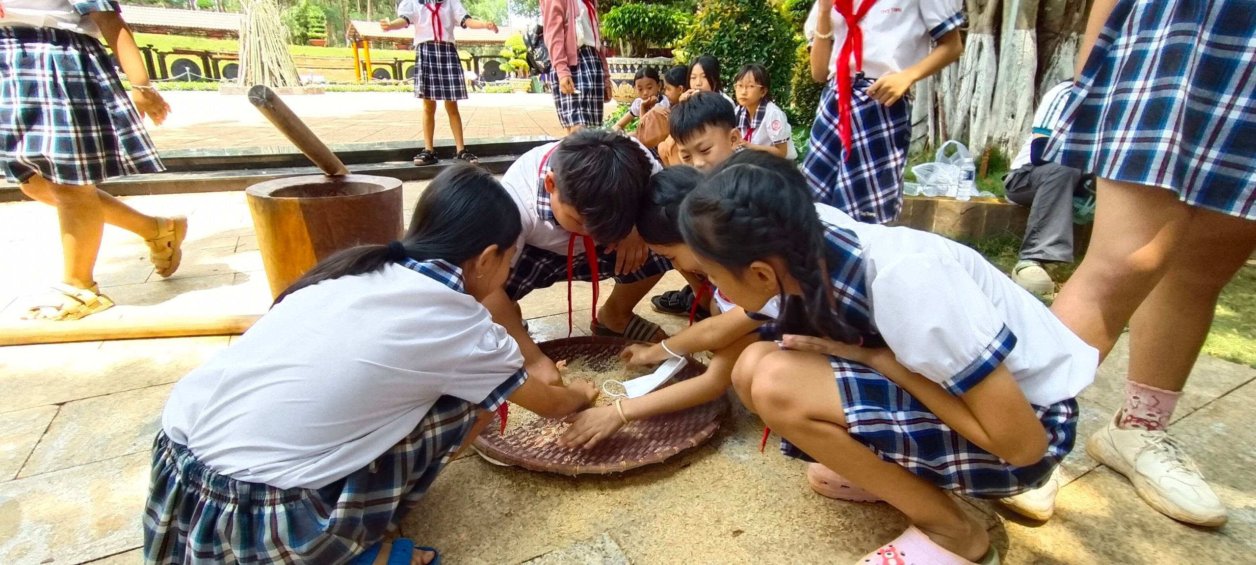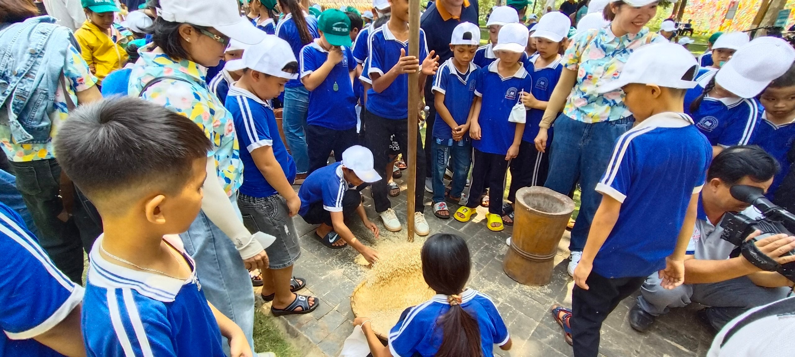 Để thực hiện tốt công tác đón tiếp các em học sinh, phù hợp với lứa tuổi và mục đích của chuyến về nguồn, BQL Khu Bảo tồn văn hóa dân tộc S’tiêng sóc Bom Bo đã xây dựng chương trình đón tiếp gồm, Giới thiệu tổng quan về dân tộc S’tiêng, các phong tục tập quán và nét văn hóa tiêu biểu, quá trình đấu tranh chống ngoại xâm của đồng bào S’tiêng, hướng dẫn các em trải nghiệm đánh đàn đá, trải nghiệm giã gạo của đồng bào S’tiêng. Trong đó BQL Khu Bảo tồn đặc biệt chú trọng việc giới thiệu về phong trào giã gạo nuôi quân của đồng bào S’tiêng trong kháng chiến chống Mỹ cứu nước mà tâm điểm là kỳ tích trong 3 ngày đêm đồng bào S’tiêng đã giã được 5 tấn gạo để cung cấp lương thực cho chiến dịch Đồng Xoài – Phước Long năm 1965. Lòng yêu nước nồng nàn và tinh thần sáng tạo của đồng bào S’tiêng đã trở thành nguồn cảm hứng để cố nhạc sỹ Xuân Hồng sáng tác nên bài hát Tiếng chày trên sóc Bom Bo, qua đó kỳ tích giã gạo nuôi quân của đồng bào S’tiêng được mọi người biết đến và sóc Bom Bo trở thành địa chỉ đỏ để học sinh và du khách trong và ngoài tỉnh đến tham quan, tìm hiểu.