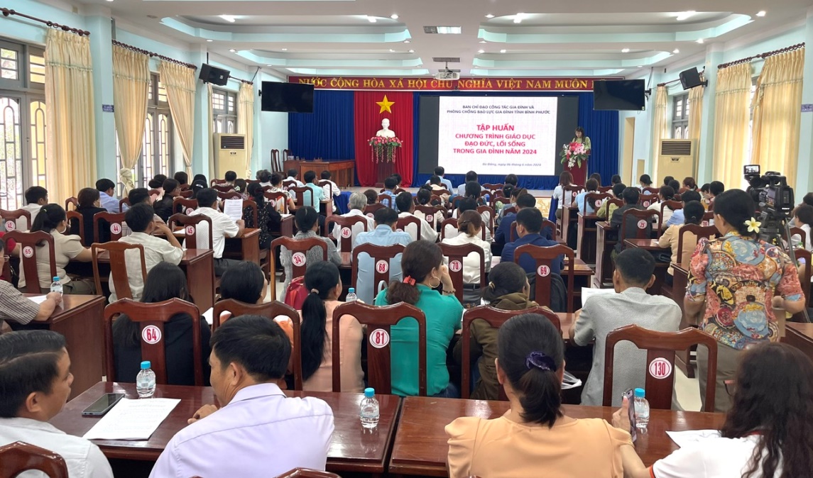 Sáng ngày 6/6, tại hội trường UBND huyện, Sở Văn hóa – Thể thao và Du lịch tỉnh Bình Phước phối hợp với Phòng Văn hóa và Thông tin huyện Bù Đăng tổ chức Hội nghị tập huấn Chương trình giáo dục đạo đức, lối sống trong gia đình năm 2024. Dự và triển khai Chương trình tập huấn có bà Nguyễn Thị Ngọc Hoa – Phó Trưởng phòng Quản lý Văn hóa, Sở VHTT&DL; ông Phạm Anh Tuấn – Phó phòng Văn hóa và Thông tin huyện.