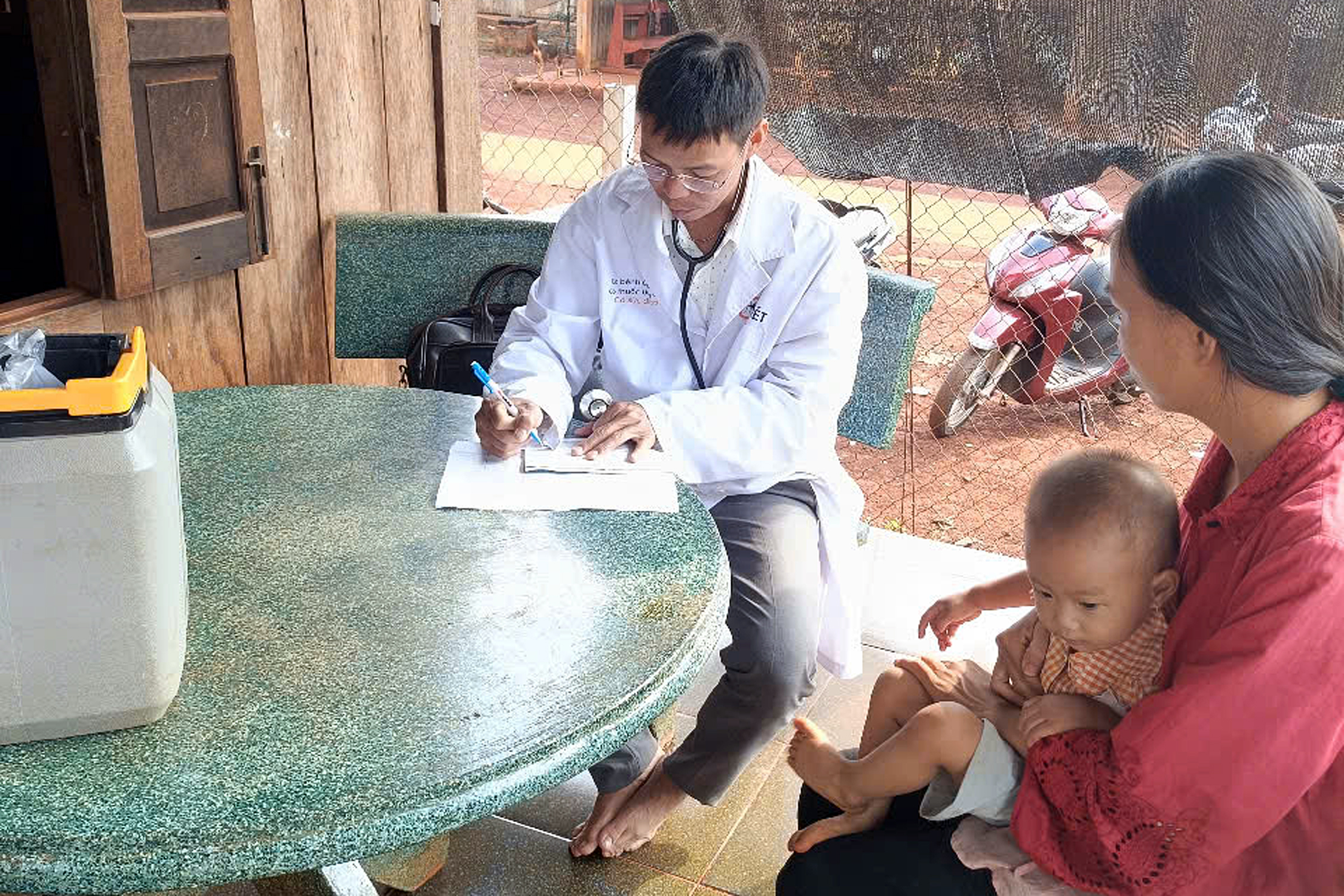 Các y, bác sĩ Trạm y tế xã Thống Nhất thực hiện điểm tiêm lưu động tại thôn 12
