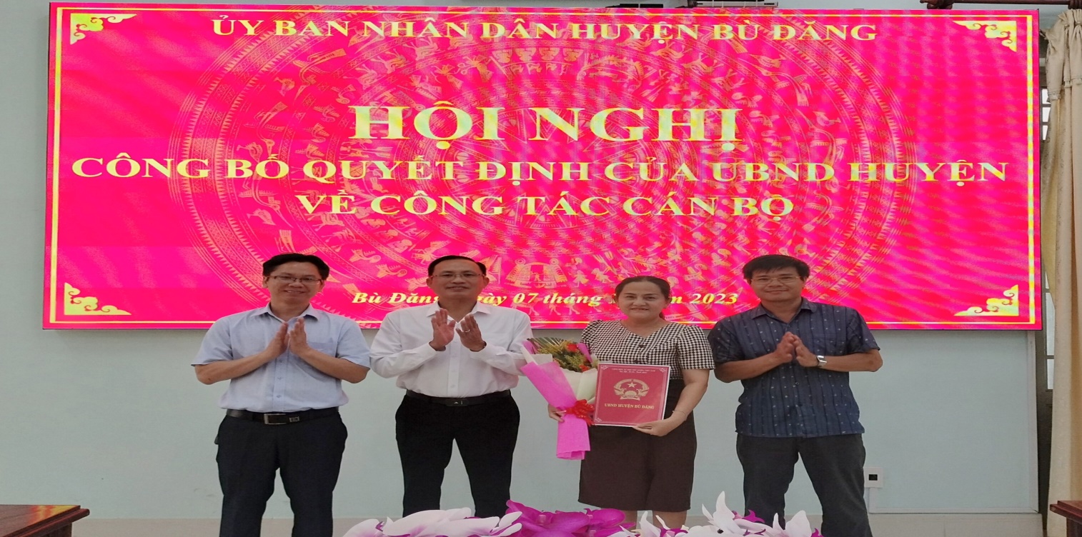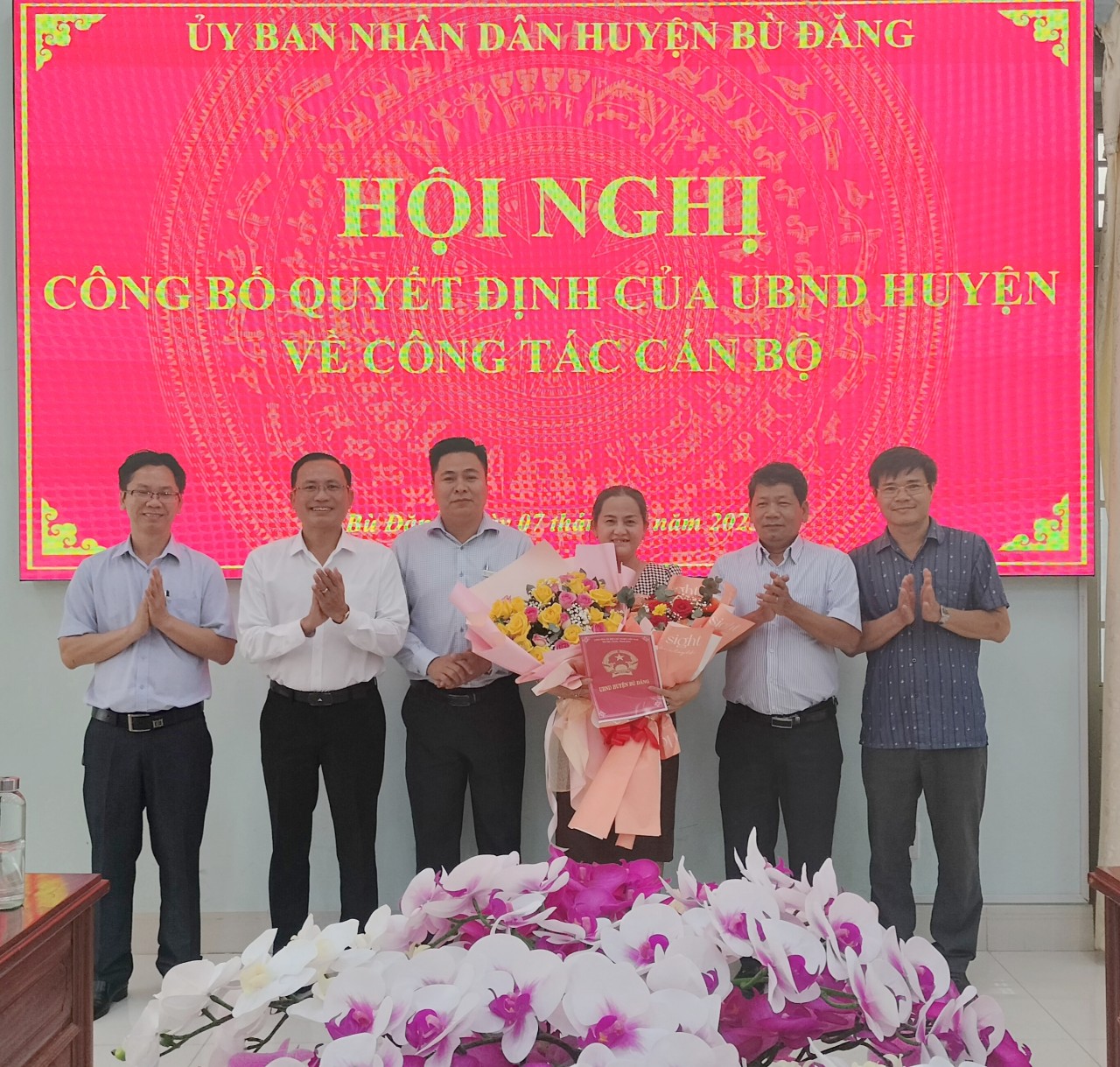 Tại buổi lễ, thừa ủy quyền của UBND huyện, Lãnh đạo phòng nội vụ huyện Bù Đăng đã công bố quyết định bổ nhiệm bà Lương Thị Lệ Thủy – Trưởng khoa khám bệnh giữ chức vụ Phó Giám đốc trung tâm y tế huyện.